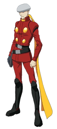 Albert has silver hair and has eyes that while only seldomly shown have pale gray pupils. He wears a red double breasted men's military uniform with a high collar, gold buttons, a yellow scarf and black boots with a gun holster around the waist that holds his Super Gun. He wears a grey glove on his left hand which conceals his machine gun hand.