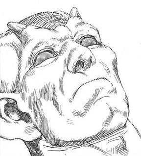 Eurynome was a large humanoid demon with a bulky muscular frame. He had patches of exposed bone on his forehead, forearms and shoulders. He had blank eyes, small horns and large ears. His rib-cage pushed out of his body, and was tipped with sharp nail-like protrusions.