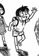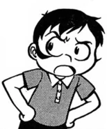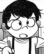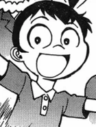 Kensaku is a boy aged around ten years old. He had short black hair and large eyes. He is almost always seen in a semi-dress shirt and shorts.