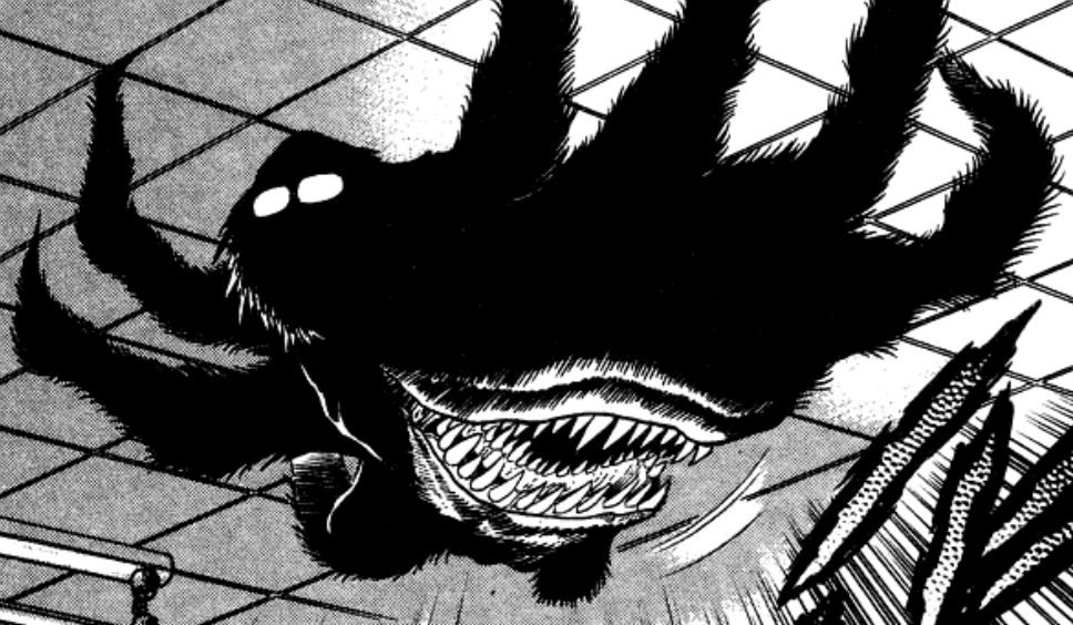 He does so reluctantly, and almost instantly the girl is set upon by Okuda and three of his friends. They tear off her clothes and molest her. Okuda approaches Mita and promises to let him use her two after they were all finished. Upon hearing that, Mita begins removing his clothes and chanting about the Mouth of Truth, much to the surprise of Okuda. Mita's body begins to transform, sprouting legs from his body and long dark fur. He proceeds to kill Okuda's friends as Jun Fudo and Lan Asuka come onto the scene and see Mita decapitate Okuda. Mita tries to snap down on Jun but misses, when she calls out the boys name the creature hesitates, as if it had recognised the name. Unfortunately several policemen and a teacher then come onto the scene, agitating the spider who then kills the teacher, several police and flees out of the window.