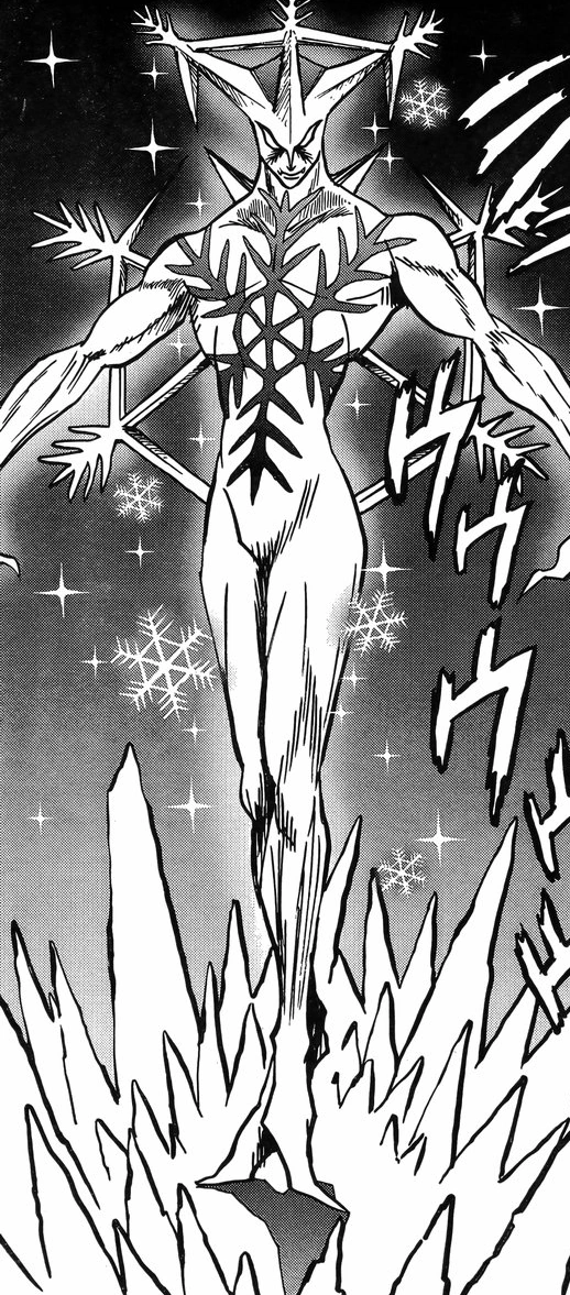 Nix is several meters tall. His design is somewhat different from his original design, since instead of having lines across his body, his chest has a large blue snowflake-like mark and has a large snowflake-like structure on his back and his head is covered in ice-like horns which complete the back shape.