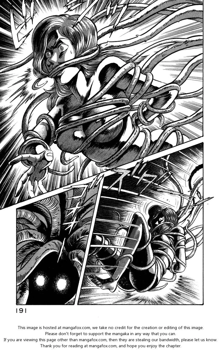 Later whilst in a hotel the plant comes to life and starts to grope her. Then the shop worker from earlier comes in throguh the window and transforms into the Plant Devilbeast. He gets onto the bed with Jun and tries to rape her but Akira Fudo in his Devil Mask form blasts through the window, grabs him and quickly kills the Devilbeast despite its pleading protests.