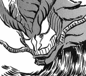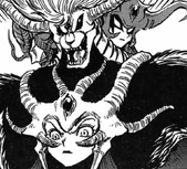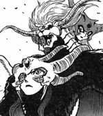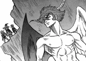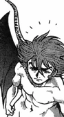 When Zennon's form is beaten, Utsugi conjures up the powers of the demons he fused with over the years and even fused with Sawako Kanzaki giving Utsugi a new centaur appearance including his humanoid torso covered in dark fur with bat-like wings on his arms. His head has three faces with the center one having a lion-like head while two other faces of a male and female are on the right and left side respectively, and Sawako's Devilman face is on his chest. The horse-like body possesses pegasus wings and have spiked up hair near the joints.
