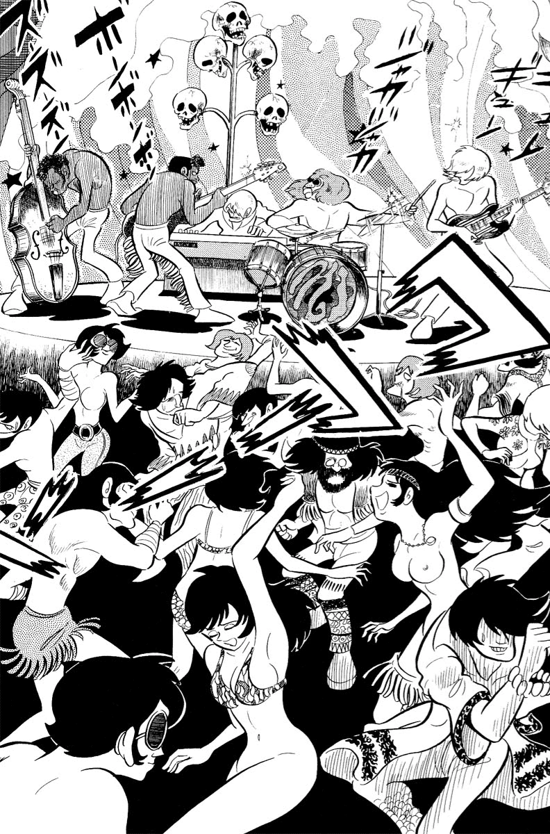 Ryo Asuka arranged the Sabbath when he invited a large group of hippies, perverts, and general social drop outs to a party at his home. Later he brings his friend Akira Fudo to the Sabbath with the intention for them to both become Devilmen. Needing only to spill blood Ryo sets about killing his guests, until they start to fight back and both Ryo and Akira begin to get beaten themselves.