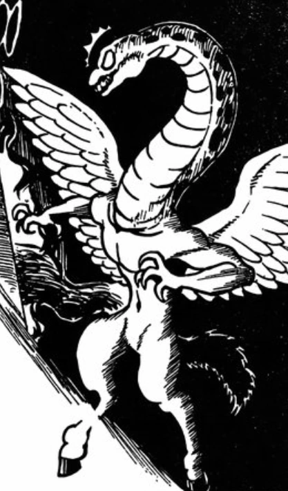 Yageba had the upper body of a human male, horse-like legs and tail, and a long snake-like head with black markings.